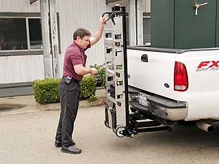 PRESS PLAY to see the Lift Hitch in action! Easily load and unload your Escalera StairCAT Lift on the back of your delivery vehicle.