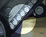 Everything that touches the steps with the Escalera is soft rubber. We have rubber wheels, rubber V-belt glide belts, and soft polyurethane lifting feet. The V-belts maintain contact with the step, although they do no lifting they prevent the Escalera from scratching the steps. The dual lifting feet on the Escalera stairclimber put the same amount of pressure on the steps as the large six inch wheels do. This is because they are the same width as the wheels and have the same amount of surface area. It is interesting to note that some of the older Escalera's only had a single lifting foot in the middle rather than the two that we have now. The reason that we changed is so that the operator wouldn't have to balance the load in a sideways direction. However, there are still a lot of these older units still in use and they still work fine with no damage to the steps.