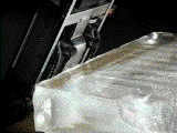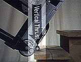Because the lifting feet on the Escalera push straight down on the step with a vertical thrust (see picture on right), it can climb any type of step surface. You can climb waxed wood, wet tile, an icy curb, or in this extreme case, a three hundred pound block of ice. The Escalera can even climb a Teflon step. Teflon is the slipperiest substance made by man. The Escalera StairClimber is popular in mountainous areas. This is because the homes often have many steps. The Escalera StairClimber can climb a snow covered or icy steps. One proud customer told us..."I've been more places with my Escalera than with a 4-wheel drive!"