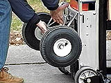 the handtruck side frames. Next, with one hand, push the big wheel frame firmly against the