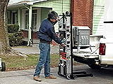 Stair Climbing Forklift to raise and lower woodstoves and inserts in and out of the back